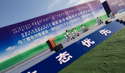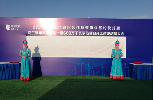 2019年9月26日上午,自治区政府与国家电力投资集团有限公司深化合作框架协议签约仪式暨乌兰察布风电基地一期600万千瓦示范项目开工建设动员大会在乌兰察布市四子王旗举行。犹记得那天“碧草如茵风微凉,蓝天似洗艳阳高,八方嘉宾同恭贺,共襄盛事话未来”的宏大场景!